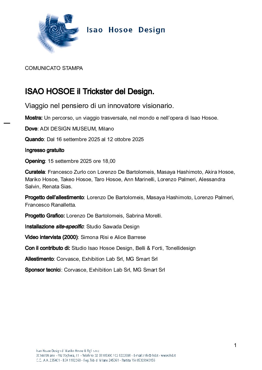 Supported by: Studio Isao Hosoe Design, Belli & Forti, Tonellidesign